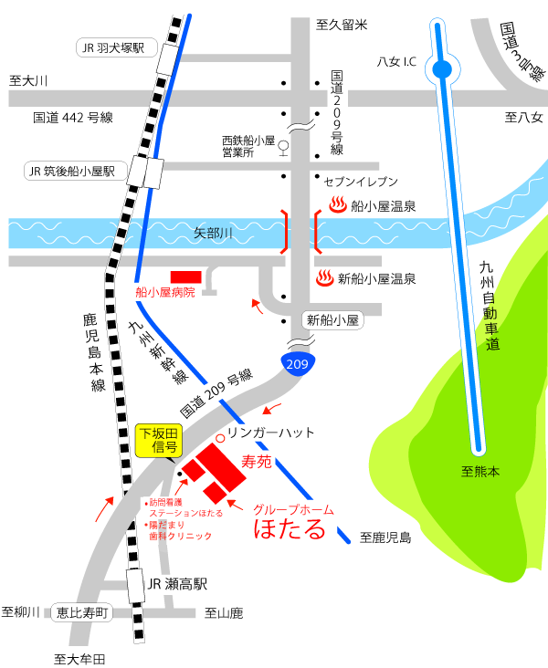 筑後市船小屋大橋から、国道209号線を大牟田方面へ約3km。