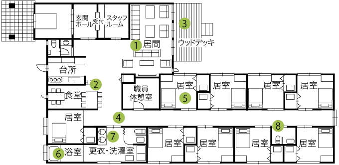 | 入居以前に近い家庭生活をおくっていただけるよう可能な限り入居者に合わせた環境づくりを目指しています。 | ||